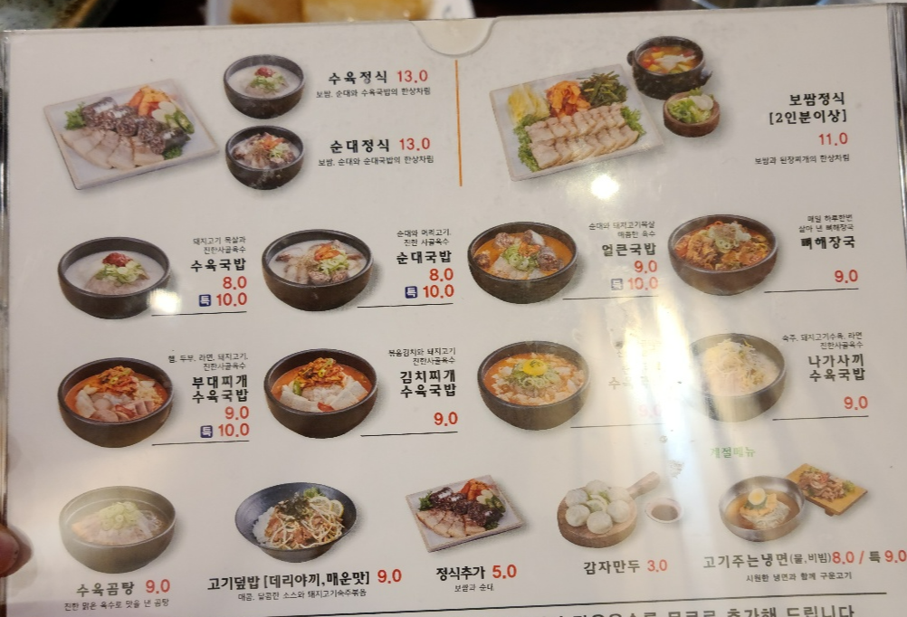 메뉴들을 보면 한국인을 위한 식단이라고 할 정도로 다양하고 찰진 메뉴들로 구성되어있어요