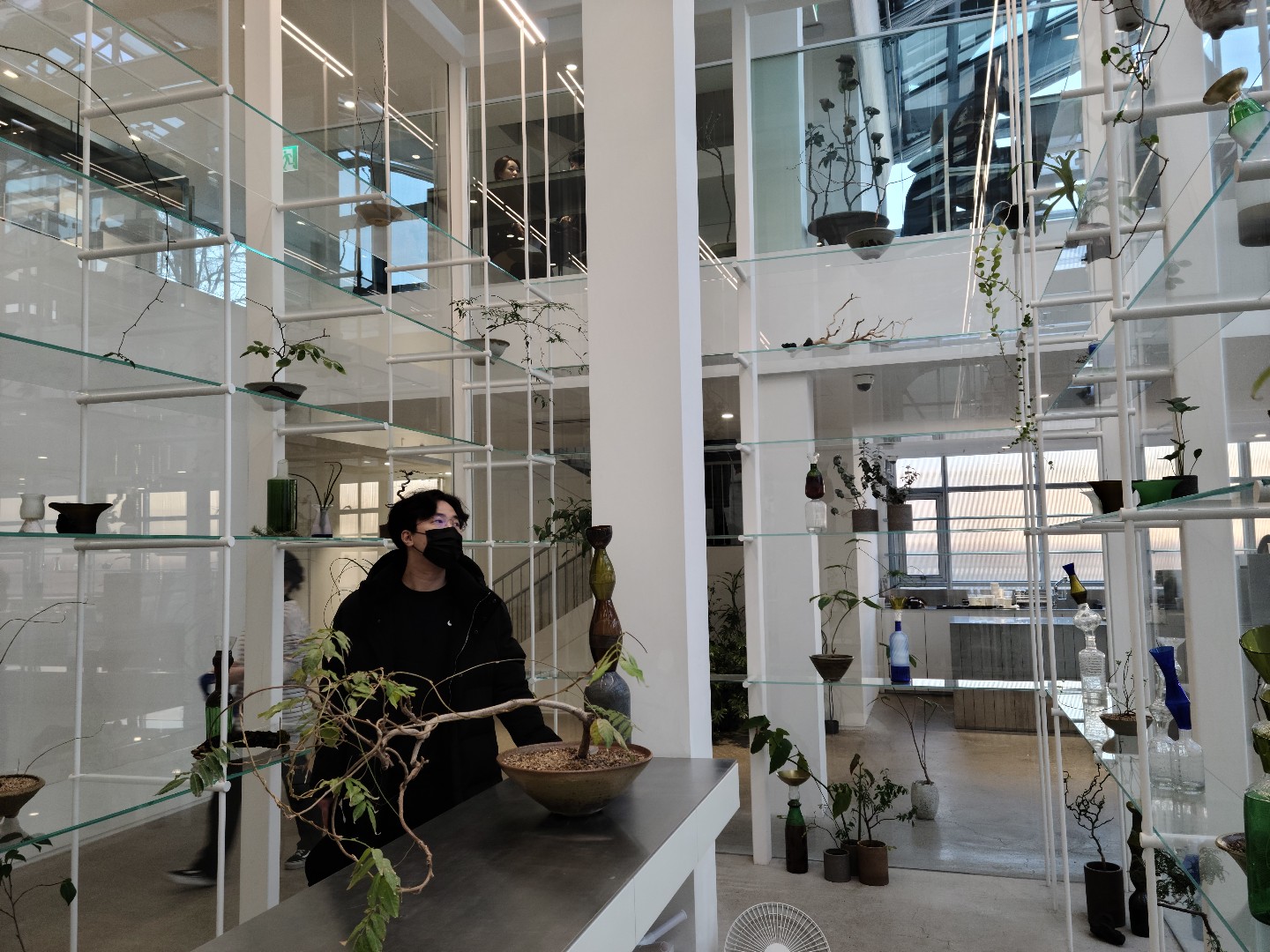 1층에는 관리를 받는 식물들, 그리고 전시된 큰 식물들까지 다양한 식물들이 있습니다.
